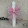 Această Lumânare de botez este realizată manual din ceară naturală de albine, oferind un aspect autentic și o ardere curată. Decorată cu o panglică delicată tip dantela. Este alegerea ideală pentru ceremonii pline de rafinament