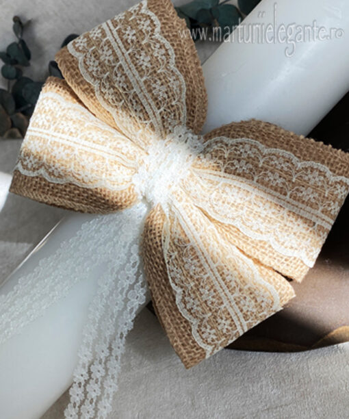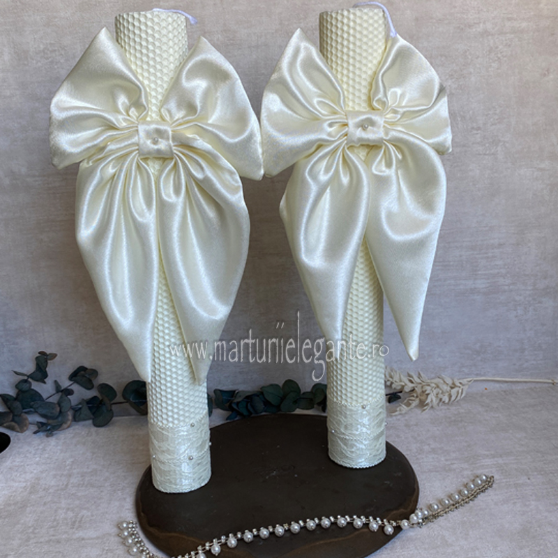 Set lumanari nunta cu funde ivoire si perlute – 2 lumanari in set